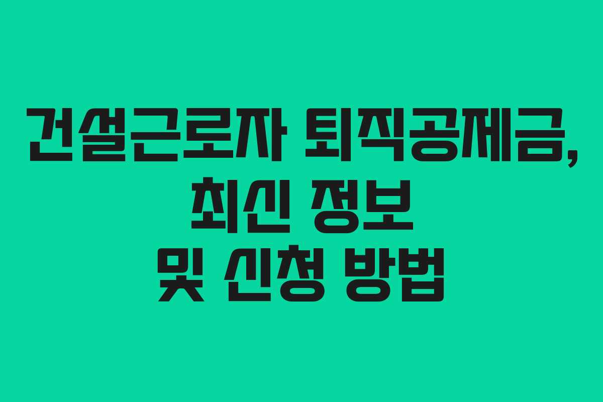 건설근로자 퇴직공제금, 최신 정보 및 신청 방법