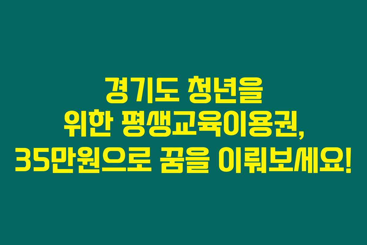 경기도에 살고 있는 청년이라면 반드시 주목해야 할 정보입니다! 35만원의 평생교육이용권을 통해 자신의 꿈을 현실로 만들 수 있는 가장 빠른 길을 안내해 드릴게요. 아래를 읽어보시면 신청 방법과 절차, 혜택에 대해 자세히 알 수 있습니다.