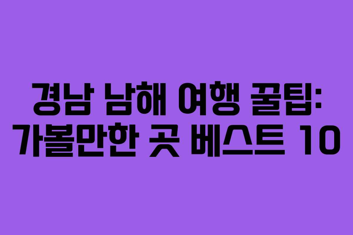 경남 남해는 아름다운 자연과 다양한 명소로 가득한 여행지입니다. 3년 동안 남해에서 생활하며 얻은 경험을 바탕으로, 꼭 방문해봐야 할 가볼만한 곳 베스트 10을 소개합니다. 이 글을 통해 남해의 매력을 발견하고 여행 계획에 도움이 되길 바랍니다.