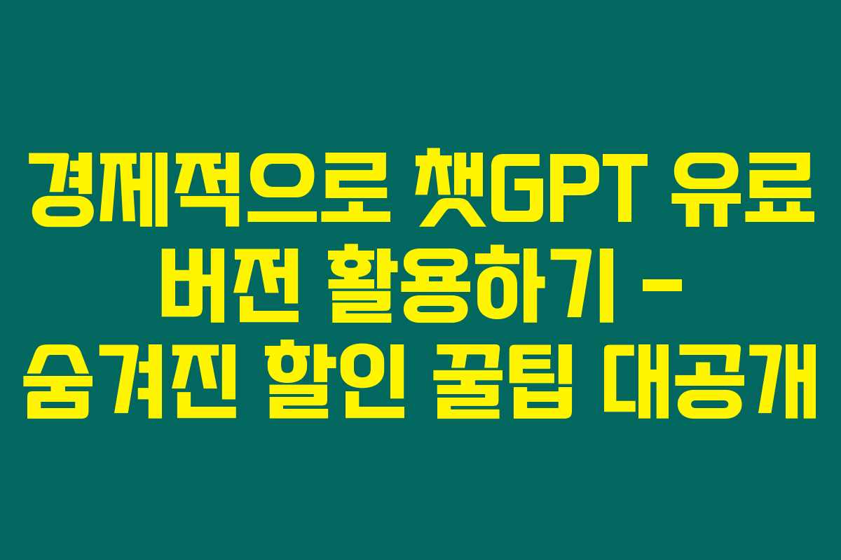 경제적으로 챗GPT 유료 버전 활용하기 – 숨겨진 할인 꿀팁 대공개