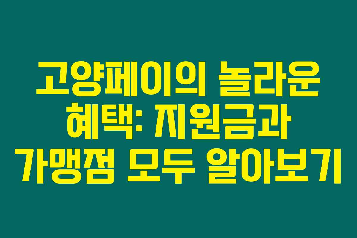 고양페이는 실제로 소상공인을 지원하고 지역 경제를 활성화하는 데 기여하는 중요한 수단이지요. 여러 혜택과 함께 고양페이를 적극 활용해보세요!