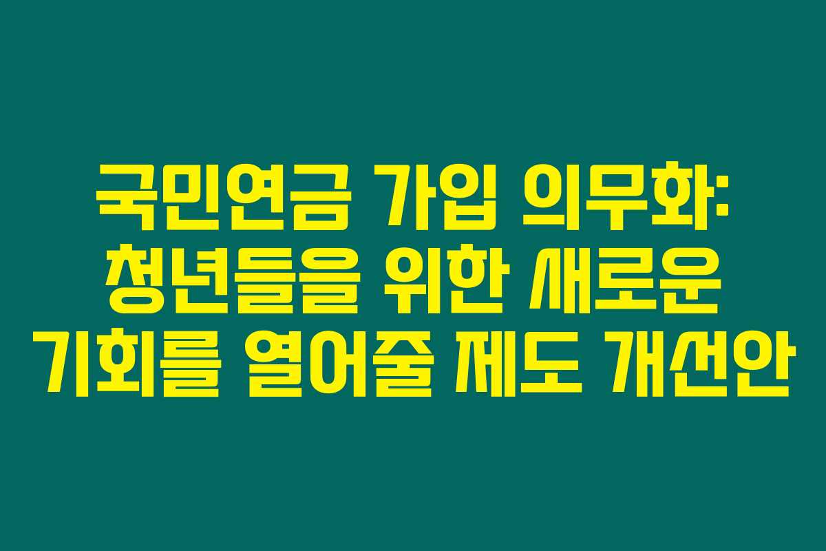마무리하며, 국민연금 가입 의무화는 청년층에게 긍정적인 기회를 제공할 수 있는 중요한 개선안이 될 것입니다. 적극적인 가입을 통한 재정적 준비는 미래에 대한 책임감을 높여 줄 것이며, 정부와 전문가들이 이 방안을 실현하기 위해 노력하는 모습을 기대해봅니다.