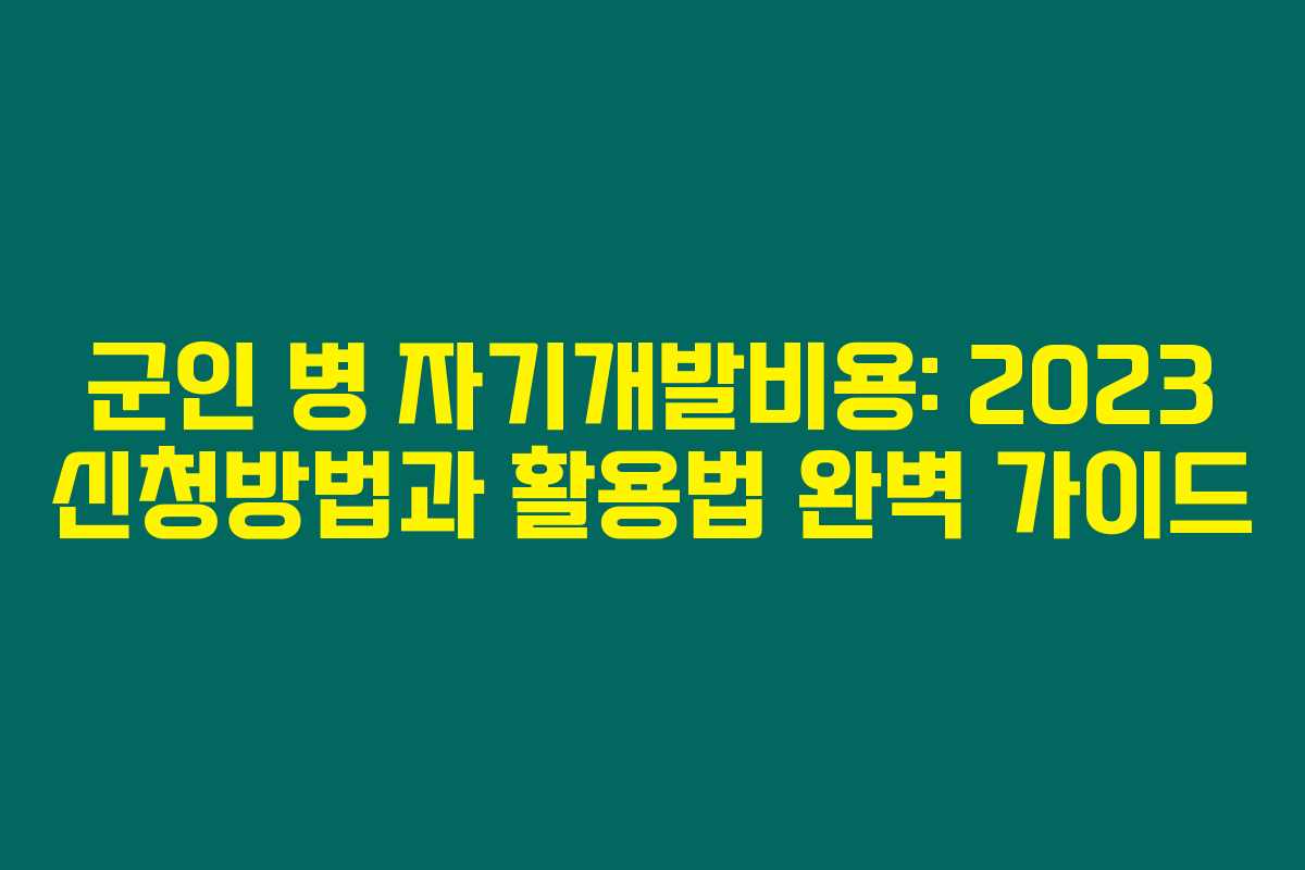 군인 병 자기개발비용: 2023 신청방법과 활용법 완벽 가이드