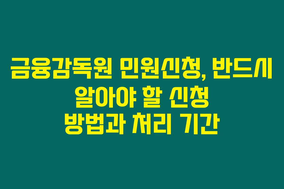 금융감독원에서 민원 신청을 고려하고 계신가요? 만약, 금융 문제로 고민하고 있다면 아래 내용을 꼭 읽어보세요. 금융감독원 민원신청의 과정과 함께 신청 방법 및 처리 기간에 대한 정보를 정리했어요.