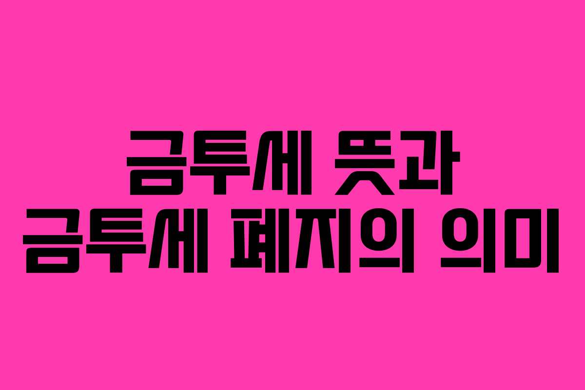 최근 주식 투자자들 사이에서 금융투자소득세, 즉 금투세에 대한 뜨거운 논의가 이루어지고 있습니다. 이번 글에서는 금투세의 뜻과 그 폐지가 주식 투자자에게 미치는 영향에 대해 살펴보겠습니다.