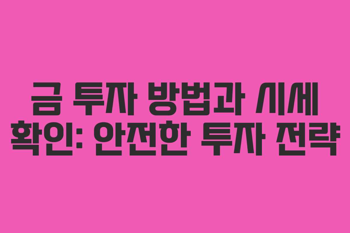 금 투자 방법과 시세 확인: 안전한 투자 전략