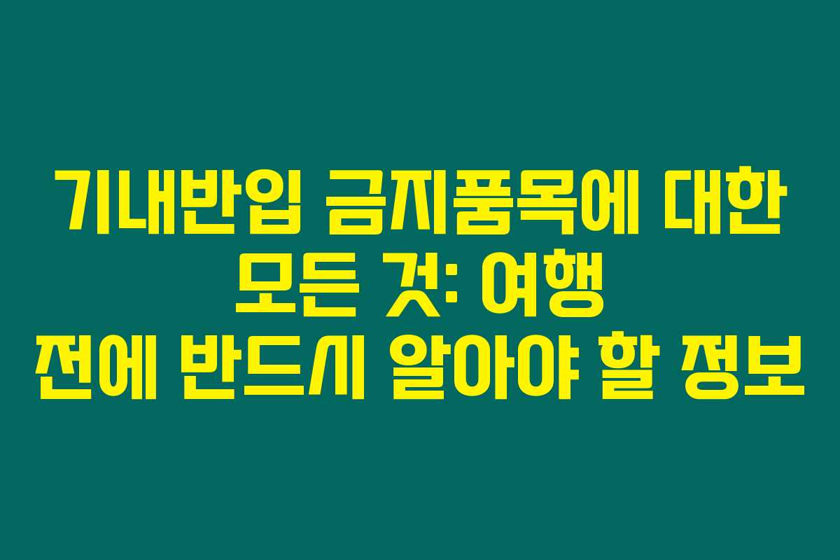 제가 직접 리서치한 바로는, 기내반입 금지품목은 안전한 비행을 위해 매우 중요하답니다. 기내에 반입할 수 없는 물품에 대해 잘 알지 않으면 불편한 상황이 생길 수 있지요. 아래를 읽어보시면 기내반입 금지품목에 대한 자세한 정보와 함께, 안전하고 즐거운 여행을 위한 준비 방법을 알 수 있을 거예요.