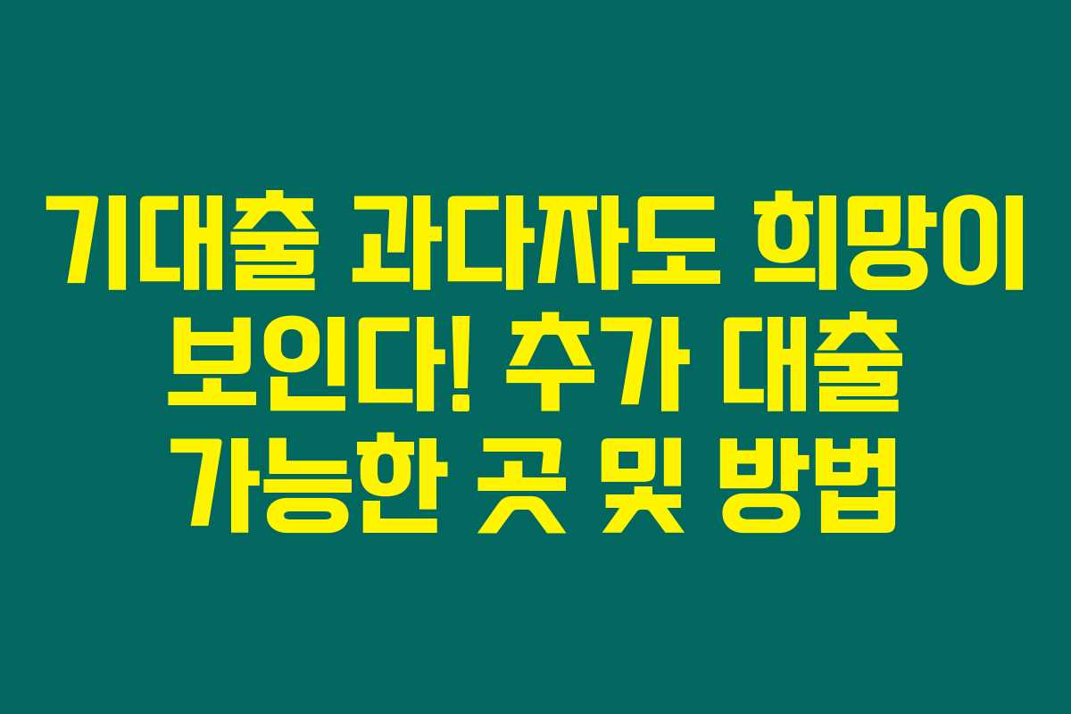 이렇게 다양한 경로로 기대출 과다자 추가 대출을 받을 수 있는 방법을 알아봤어요. 대환대출을 통해 부채 상환 부담을 줄이고, 재정적인 안정을 찾길 바라요. 추가적인 질문이 있으셨다면 언제든지 댓글로 궁금한 점을 남겨주세요!