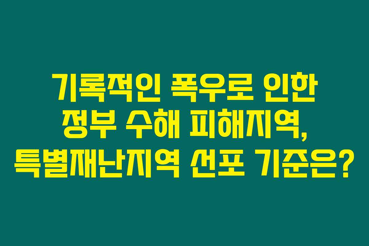 지난 8월, 수도권과 중부지방에서 발생한 기록적인 폭우로 인해 많은 수해 피해가 발생했습니다. 정부는 이 지역을 특별재난지역으로 선포하기 위해 긴급회의를 열었습니다. 이번 글에서는 특별재난지역의 선정 기준과 지원 내용을 정리해보았습니다. 아래를 읽어보시면 수해 피해 해결 방안과 정부의 지원체계에 대해 더 알게 될 거예요!