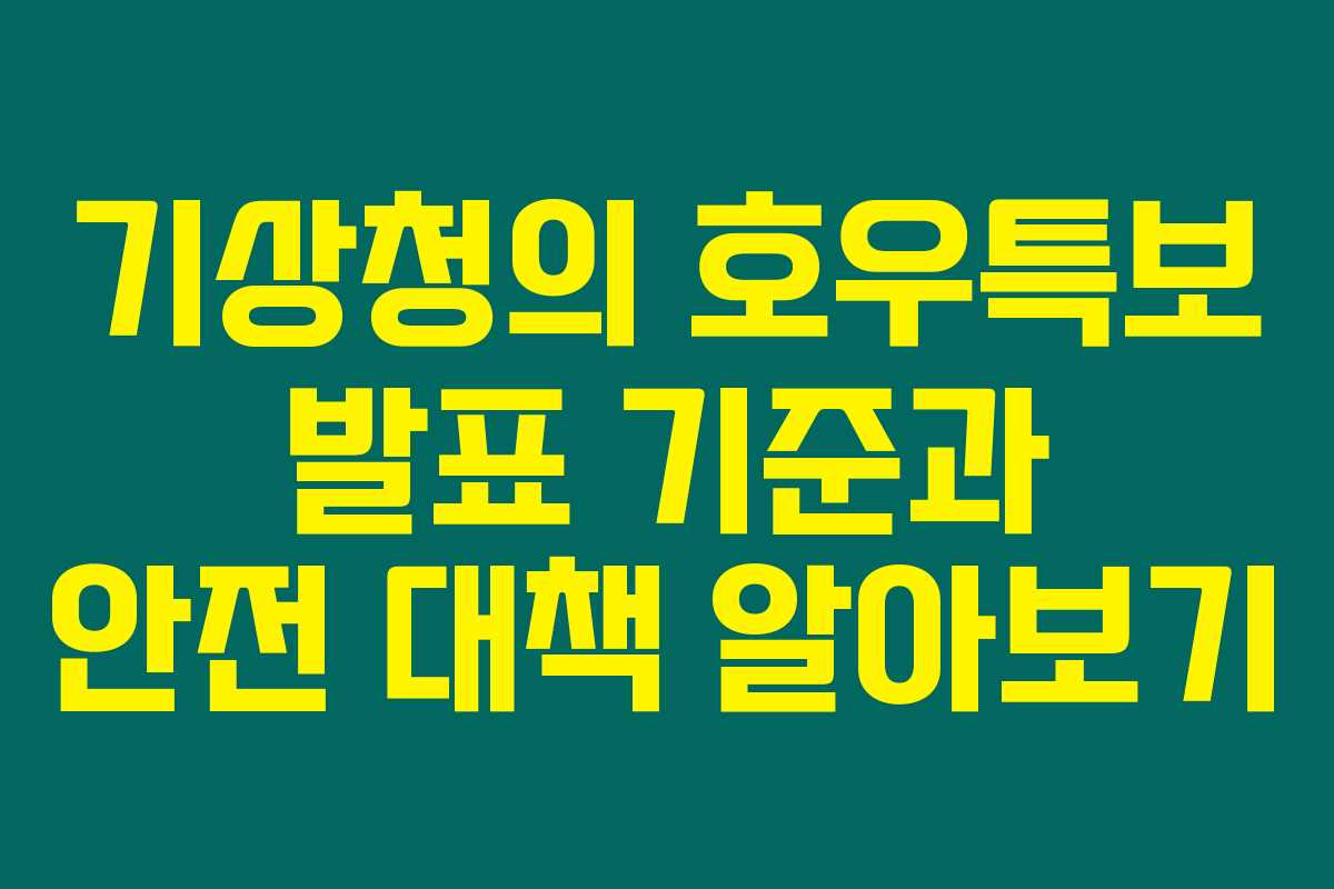 호우특보는 강한 비가 예상될 때 발표되는 중요한 경고로, 국민의 안전을 지키는 데 큰 역할을 합니다. 그렇지만 호우특보가 언제 어떻게 발표되는지에 대해 잘 모르는 경우가 많은데요. 아래를 읽어보시면 호우특보의 발표 기준과 기상청의 예보, 그리고 안전한 대처 방법까지 자세히 알아볼 수 있습니다.