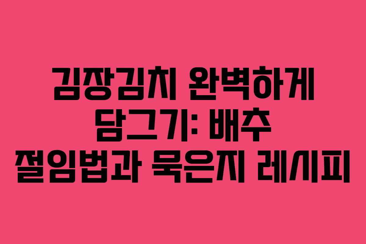 김장철이 다가오면 많은 가정에서 김치를 담그기 위해 준비를 합니다. 김치는 한국의 전통 음식으로, 겨울철에 저장식품으로 많은 사랑을 받고 있습니다. 이 글에서는 배추 절임법과 묵은지 담는 법을 자세히 소개하겠습니다.