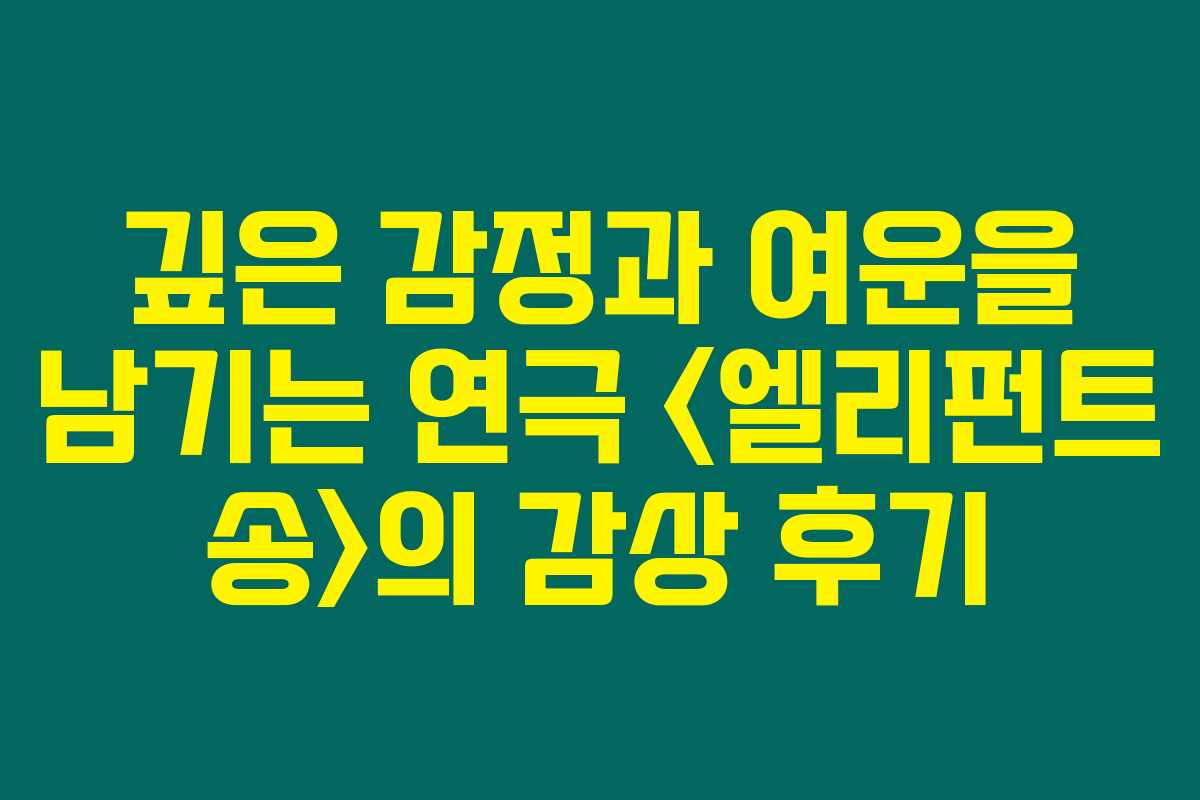 연극 <엘리펀트 송>은 저에게 깊은 감정적 여운을 남겼습니다. 사랑의 의미를 진지하게 고민하는 계기가 되었어요. 여러분도 관람하시면 좋은 경험이 될 것입니다.