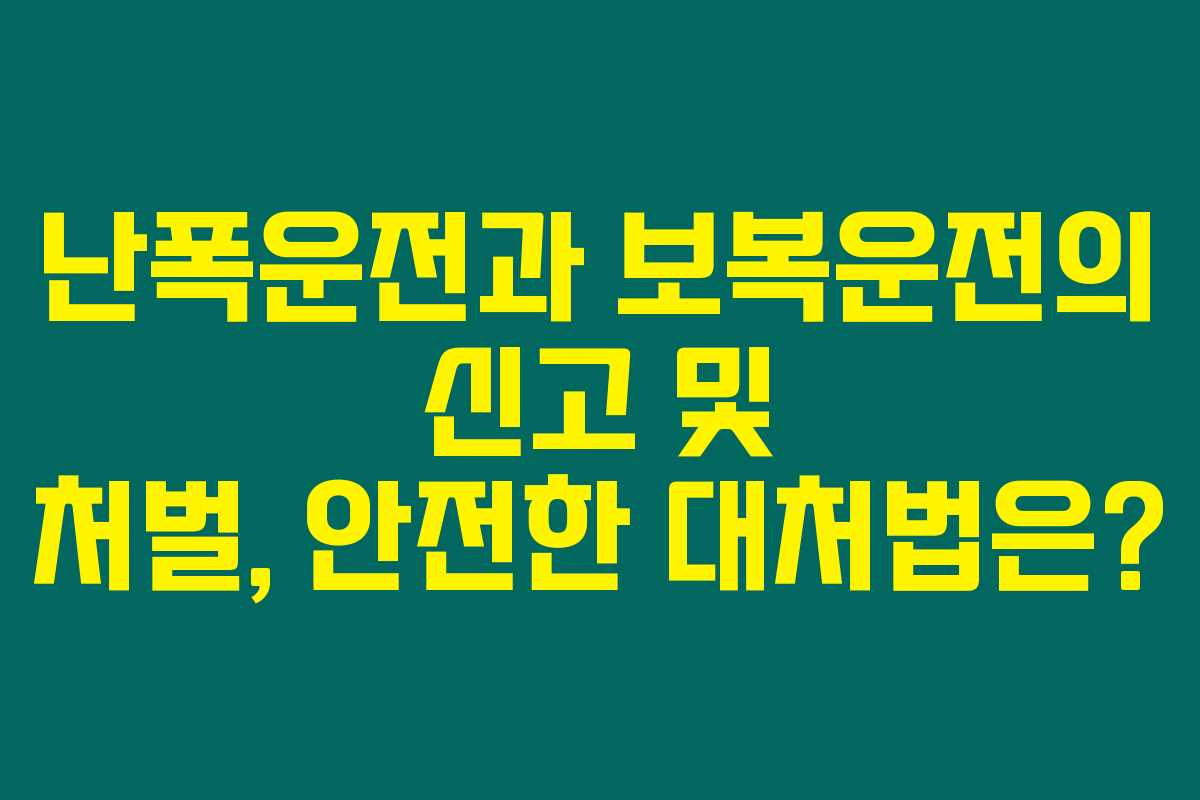 운전 중 갑자기 난폭운전이나 보복운전 차량을 마주치는 경우, 두려움과 불안감을 느끼기 쉽습니다. 이런 상황에서 어떻게 대처해야 할지, 어떤 신고 절차와 처벌이 있는지 알아보면 안전한 주행을 이어갈 수 있습니다. 아래를 읽어보시면 난폭운전과 보복운전에 대한 자세한 정보와 대처 방법을 알 수 있습니다.
