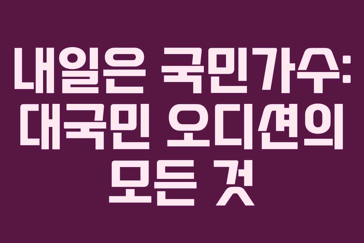 내일은 국민가수는 새로운 스타의 탄생을 예고하며, 많은 사람들에게 감동과 즐거움을 선사할 것으로 기대됩니다. 참여를 원하시는 분들은 서둘러 신청하세요!
