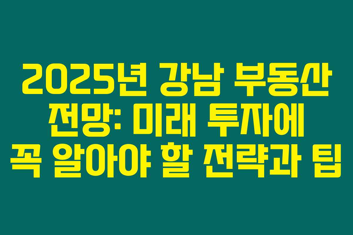 2025년 강남 부동산 시장에서는 정부 정책, 금리 변동, 공급과 수요의 흐름 등이 복합적으로 작용하며 투자 기회를 제공합니다. 결국, 부동산 투자는 정보에 기반한 현명한 판단이 있다고 생각하니, 쉼 없이 변화하는 시장을 잘 체크하고 준비하는 것이 중요하겠어요. 여러분은 2025년 강남 부동산 시장을 어떻게 전망하시나요? 의견이 있다면 댓글로 남겨주세요!