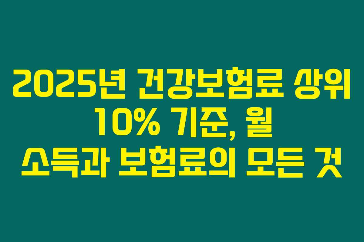 제가 직접 리서치한 바로는, 많은 분들이 자신의 건강보험료가 평균에 비해 어떤지 궁금해 하시는 것 같아요. 특히 고소득 전문직이나 기업의 임원들은 자신이 납부하는 건강보험료가 상위 몇 %에 해당하는지를 궁금해 하시기 마련입니다. 그래서 오늘은 2025년 건강보험료의 상위 10% 기준, 월 소득, 보험료, 그리고 본인부담상한제의 혜택에 대해 자세히 알아보려고 해요. 아래를 읽어보시면 많은 도움이 될 거예요.
