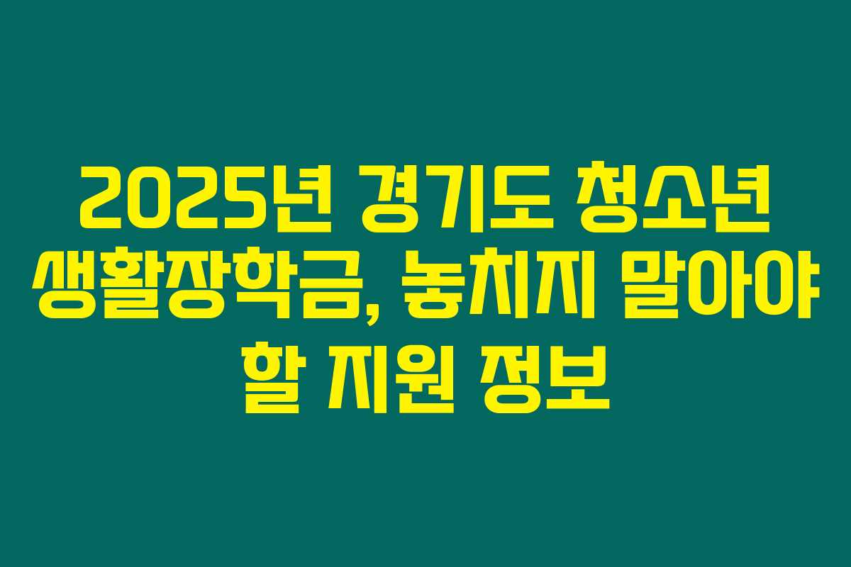 2025년 경기도 청소년 생활장학금, 놓치지 말아야 할 지원 정보