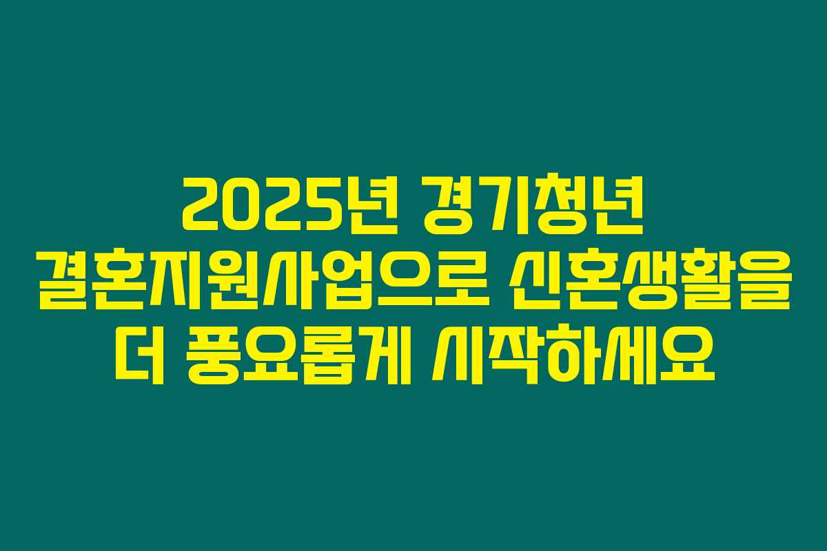 2025년 경기청년 결혼지원사업에 대해 궁금하신가요? 신혼부부라면 이 100만 원 지원금! 신청 방법과 자세한 정보를 아래에서 확인해 보세요. 결혼이 점점 부담스러워지는 2030 세대에게 꼭 필요한 지원 정책이죠. 더 이상 고민하지 마세요!