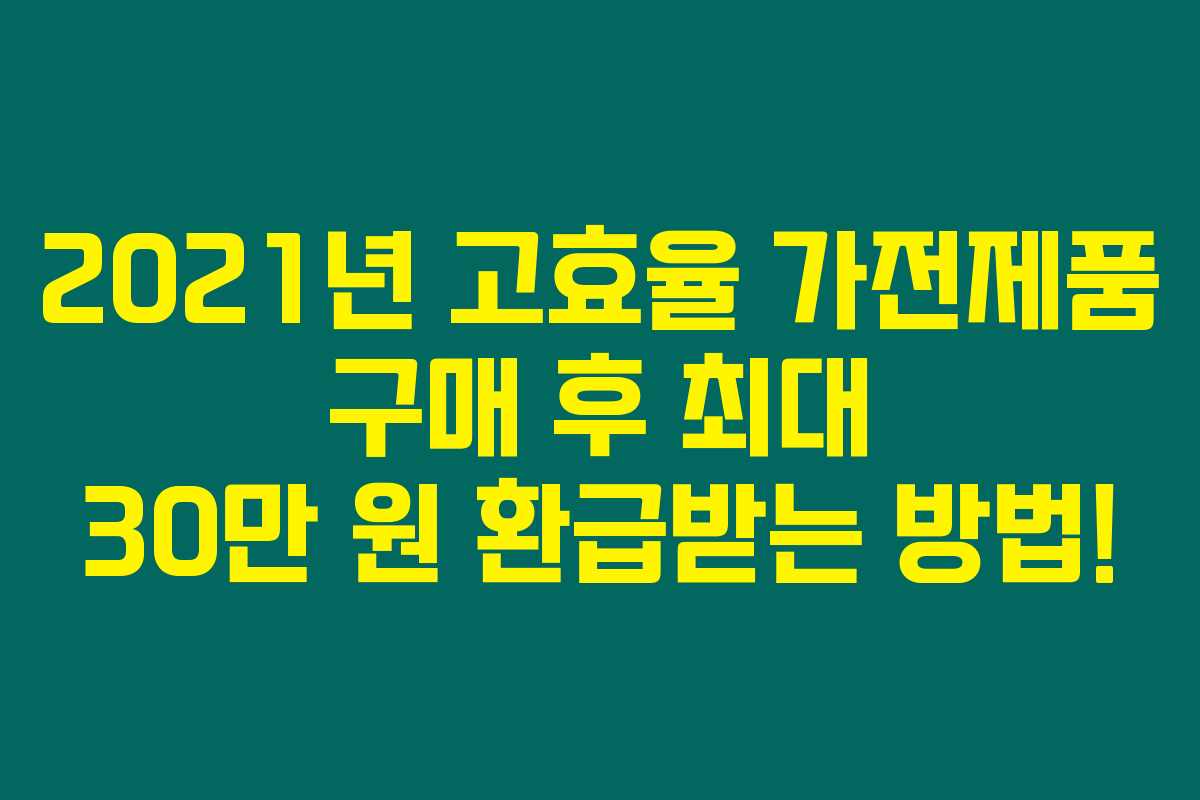 안녕하세요! 가정에서 사용하는 가전제품에 대한 환급 제도에 대해 궁금해하시는 분들이 많으시죠? 2021년부터 시행된 고효율 가전제품 구매 시 최대 30만 원을 환급받을 수 있는 방법에 대해 아래를 읽어보시면 자세히 알아보실 수 있어요.
