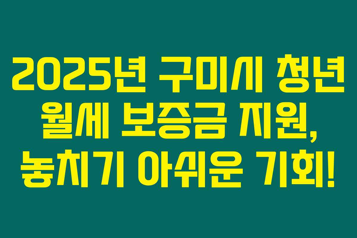 제가 직접 리서치해본 바로는, 2025년 구미시에서 제공하는 청년 월세 보증금 지원 프로그램은 경제적으로 어려움을 겪고 있는 젊은 층에게 큰 도움이 됩니다. 이 지원은 월세에 대한 보증금을 위한 것이 아니라, 매달 납입해야 하는 월세의 일부를 지원하는 프로그램입니다. 아래를 읽어보시면, 신청 자격과 방법에 대한 모든 정보를 확인할 수 있습니다.