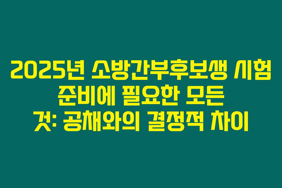 2025년 소방간부후보생 시험을 준비하는 여러분께! 시험 준비 과정은 복잡하지만, 아래를 읽어보시면 공채와의 차이점을 명확히 알 수 있어, 보다 효과적으로 전략을 세울 수 있을 거에요. 소방의 길로 나아가고 싶은 분들에게 꼭 필요한 정보들이 가득하답니다.