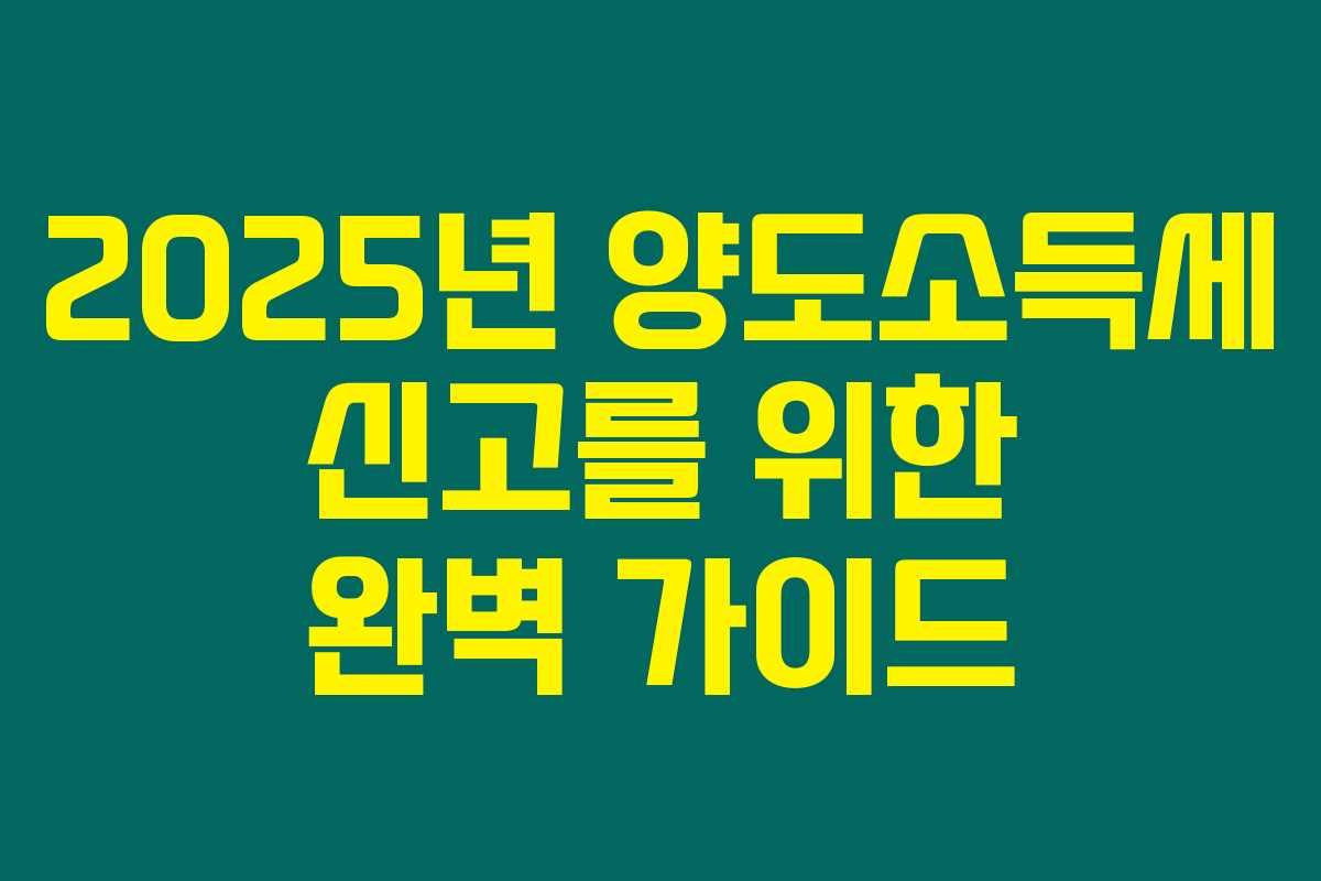 신고를 미루지 마시고 미리 준비하여 원활한 양도소득세 신고를 하시길 바랍니다. 이렇게 정리된 정보를 참고하신다면 2025년 양도소득세 신고가 한결 쉬워질 거예요!