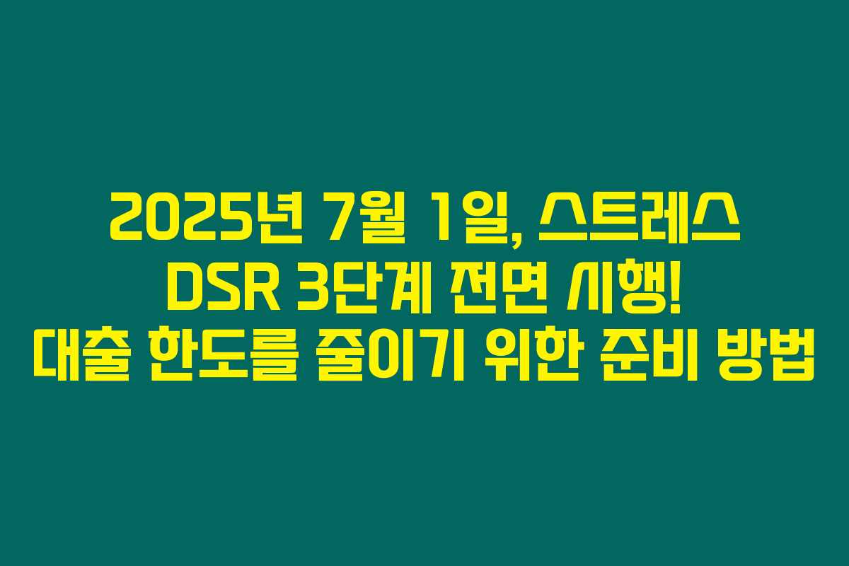2025년 7월 1일부터 스트레스 DSR 3단계가 전면 시행되며, 이로 인해 대출 한도와 상환 능력이 크게 변화합니다. 저는 이 변화를 통해 조사해본 내용을 여러분께 정리해보았습니다.