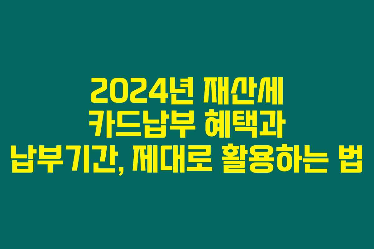2024년에는 여러 카드사에서 제공하는 혜택을 잘 활용하고, 재산세 납부를 통해 경제적 이득을 챙기세요!