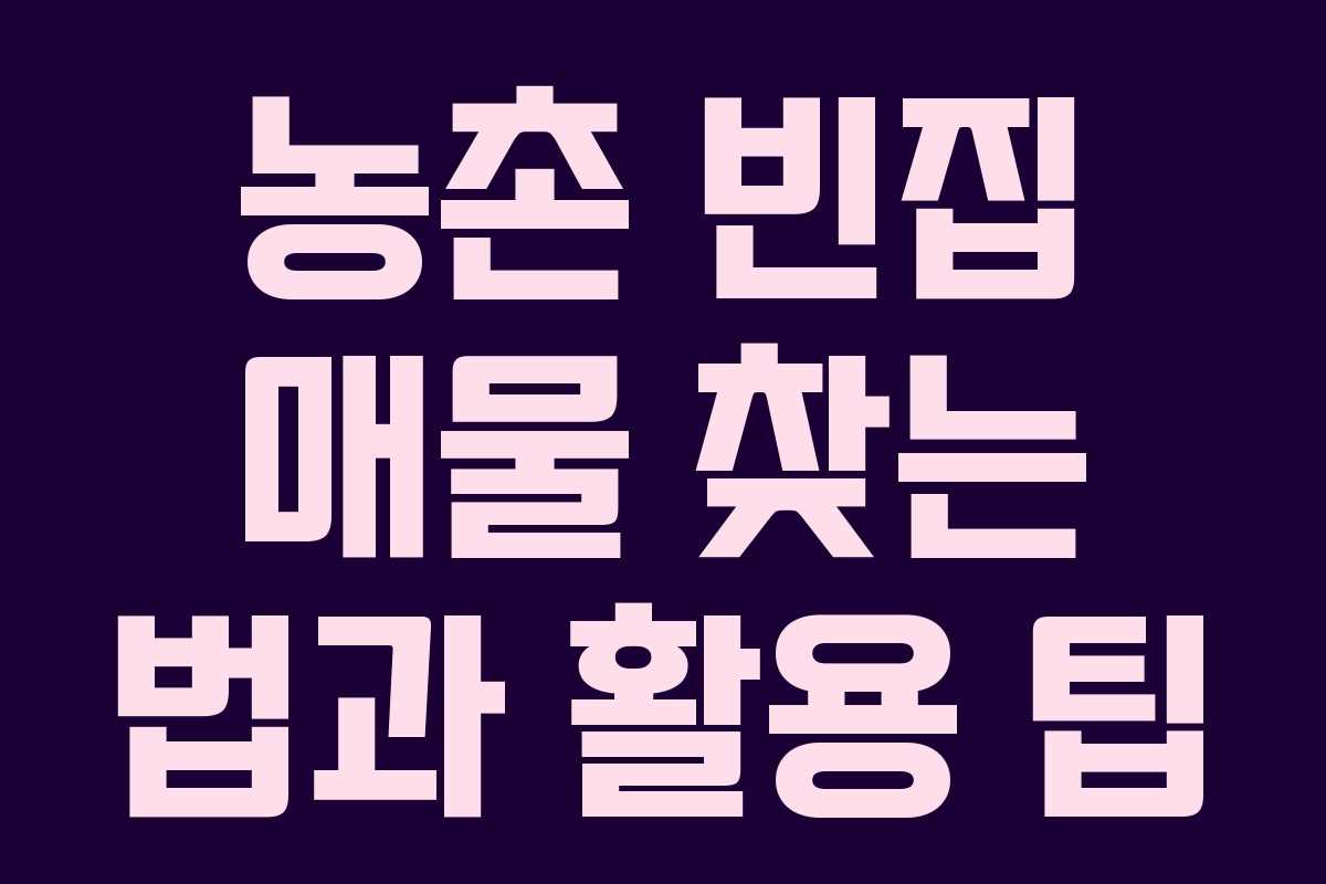 농촌 빈집 매물을 찾는 것은 귀농이나 귀촌을 꿈꾸는 많은 사람들에게 중요한 과제가 되고 있습니다. 본 글에서는 농촌 빈집을 찾는 방법과 활용 아이디어를 소개합니다.