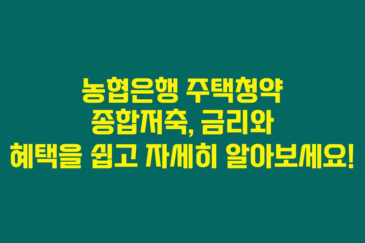 제가 직접 알아본 바로는 농협은행 주택청약 종합저축은 주택을 구입하고자 하는 분들에게 매우 유용한 상품이에요. 소득공제 혜택과 함께 금리 및 가입 조건이 다른 금융 상품들과 비교했을 때 매력적인 부분이 많답니다. 아래를 읽어보시면 이 상품에 대한 전반적인 정보와 혜택을 쉽게 이해하실 수 있을 거예요.