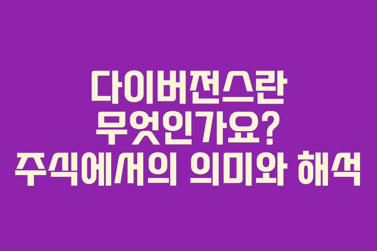 주식 투자에서 “다이버전스”라는 용어는 매우 중요한 개념입니다. 다이버전스는 주가와 보조지표 간의 움직임이 서로 다를 때 발생하며, 이는 주가의 향후 움직임을 예측하는 데 유용한 도구가 될 수 있습니다.