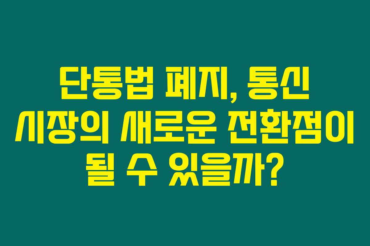 제가 직접 알아본 바로는, 단통법이 최근 전면 폐지 결정이 내려지면서 통신 시장이 큰 변화의 중간에 서게 되었습니다. 정부는 단통법을 폐지하기로 하였고, 그 시기와 이유가 많은 사람들에게 관심을 받고 있습니다. 아래를 읽어보시면 단통법 폐지의 배경과 향후 전망에 대해 자세히 알아보실 수 있습니다.