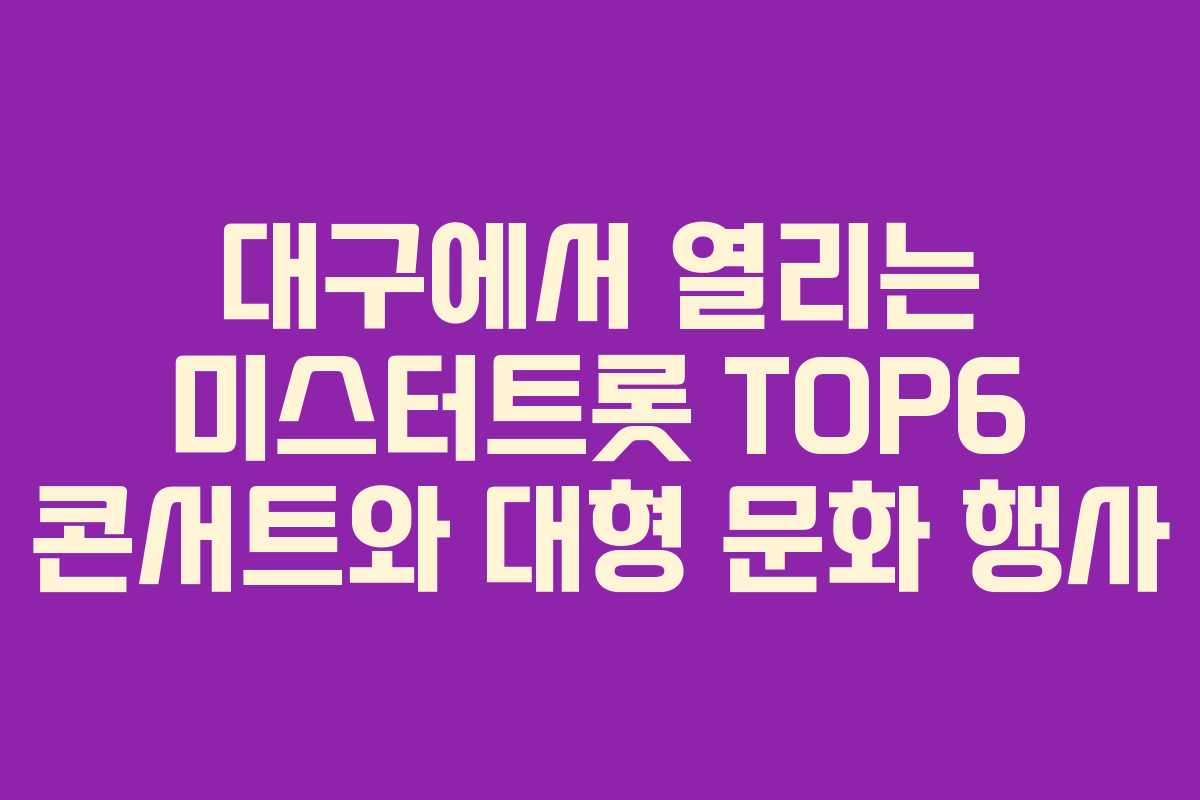 오는 주말부터 대구 엑스코에서 미스터트롯 TOP6 콘서트가 시작되며, 8월까지 다양한 대형 콘서트와 뮤지컬 행사가 개최될 예정입니다. 이번 행사들은 팬들의 오랜 기다림을 끝내고 다시 시작되는 문화활동의 일환으로 기대를 모으고 있습니다.