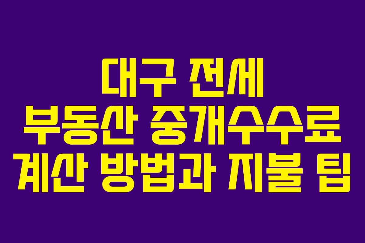 대구 전세 중개수수료는 일반적으로 임차인과 임대인이 각각 부담합니다. 계약 조건에 따라 달라질 수 있습니다.