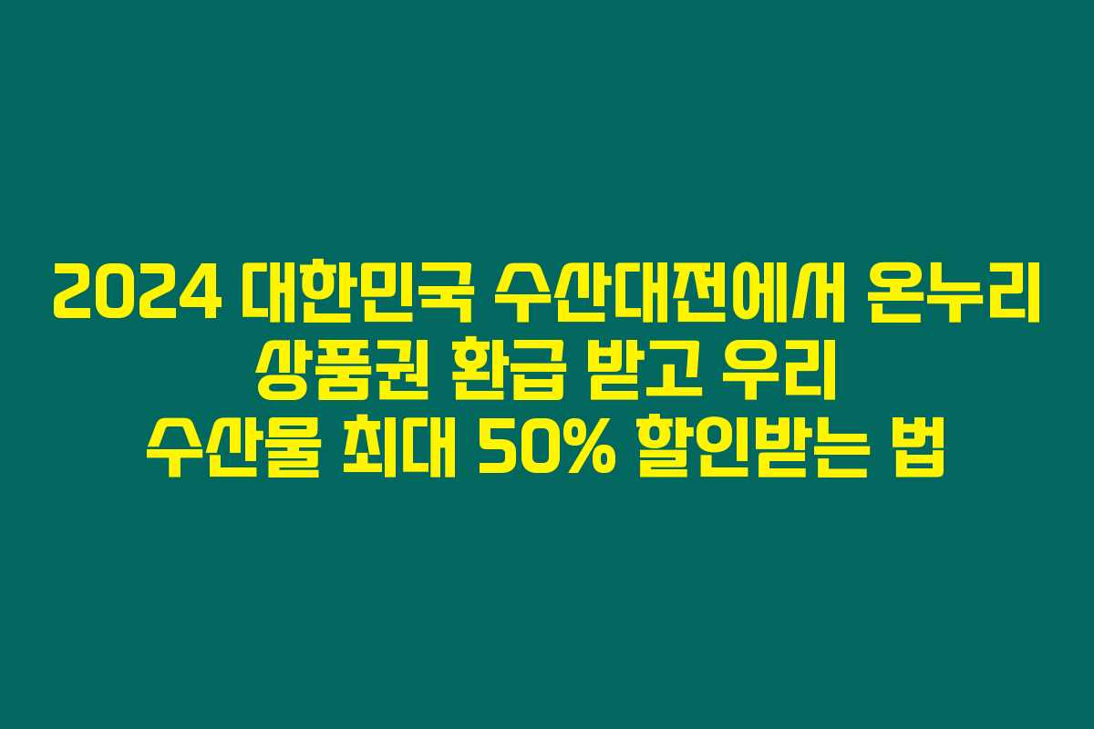 국산 수산물 좋아하시는 분들 주목! 혹시 온누리 상품권으로 최대 50% 할인받으면서 신선한 수산물을 구매할 수 있는 기회가 있다는 사실 알고 계셨나요? 2024 대한민국 수산대전에서는 다양한 수산물을 만나보고 각종 할인 혜택도 누릴 수 있답니다. 아래를 읽어보시면 이 기회를 놓치지 않도록 하는 유용한 정보를 확인하실 수 있을 거예요.