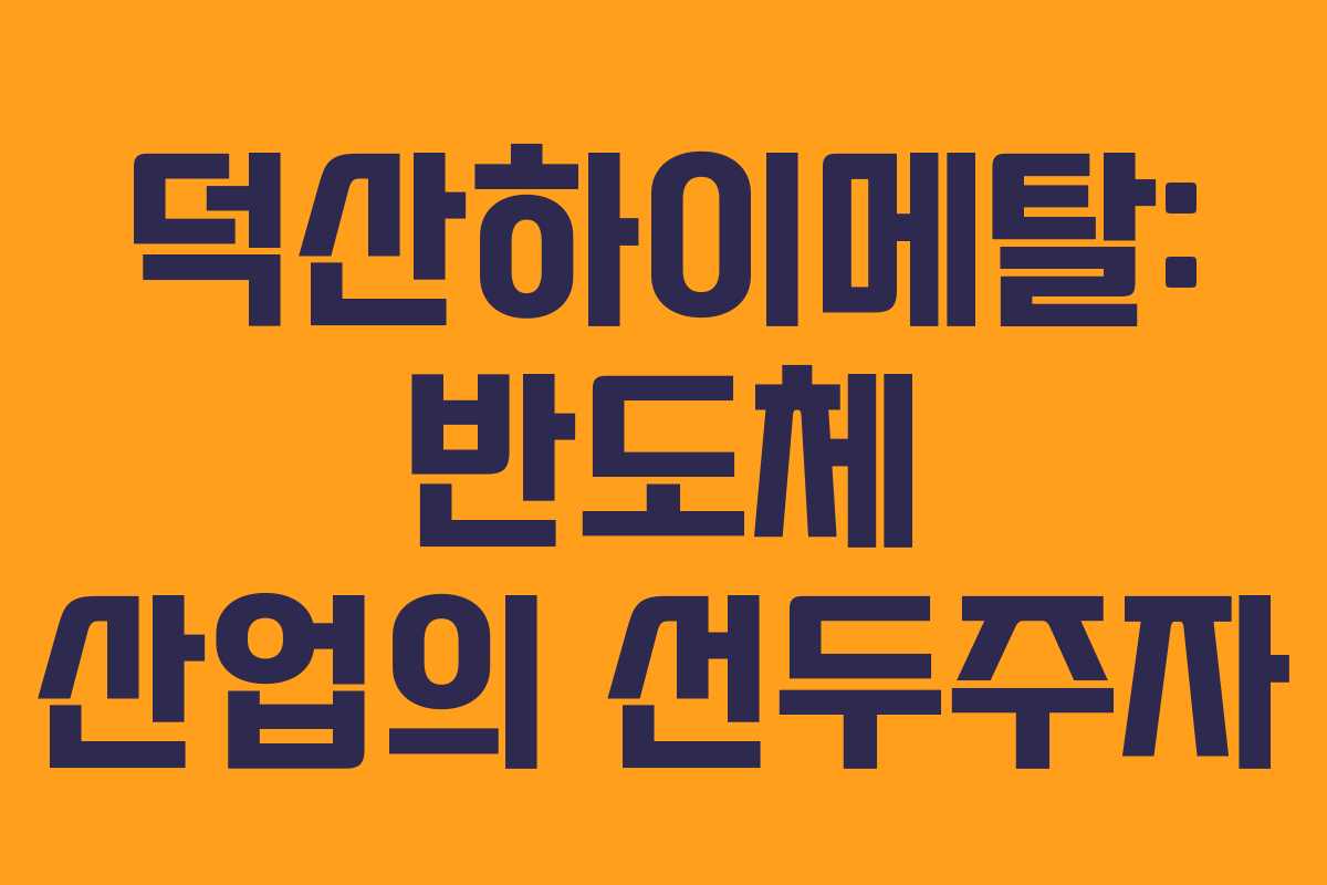 덕산하이메탈은 앞으로도 반도체 업계의 주요 플레이어로 자리잡을 가능성이 높습니다.