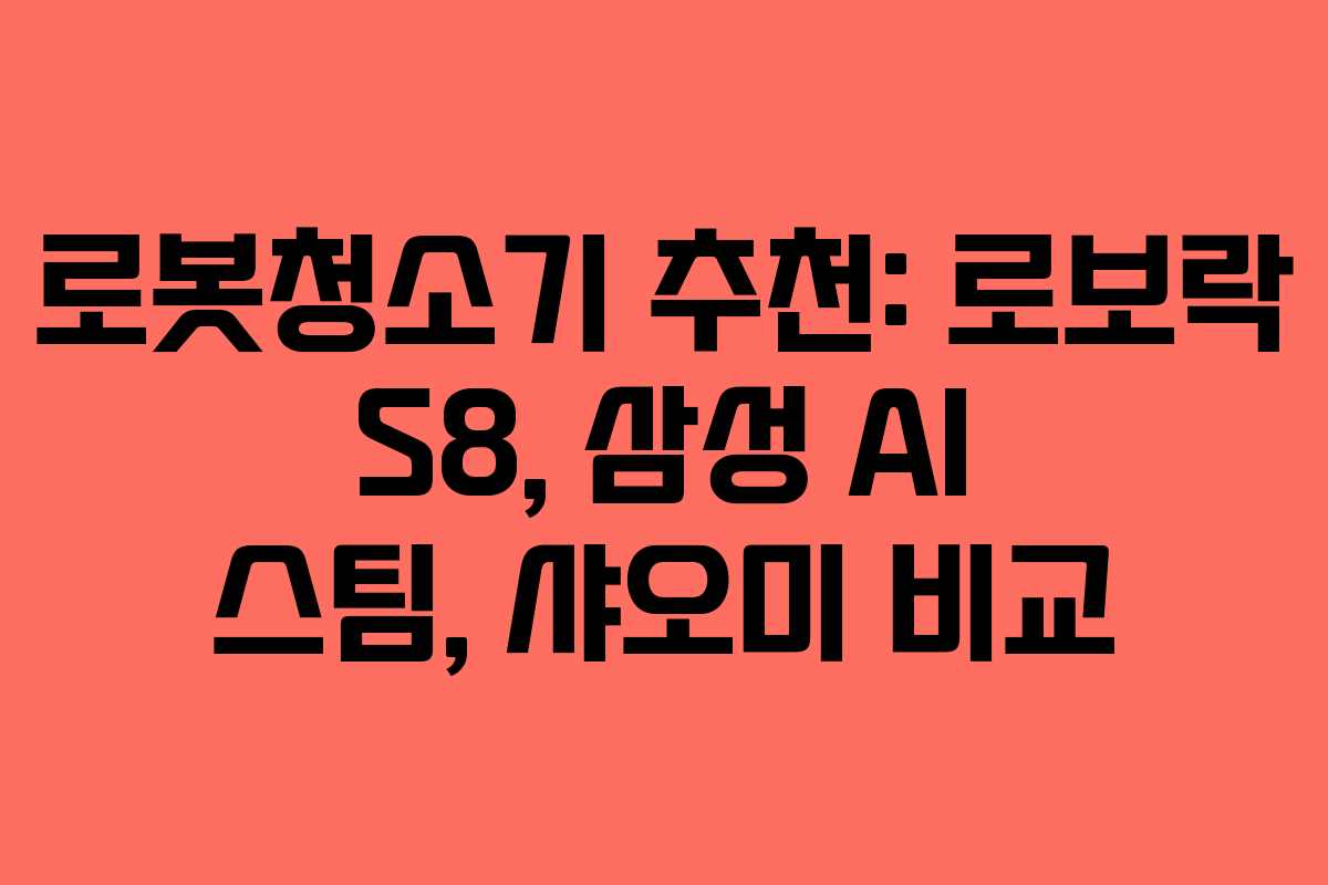 로봇청소기 추천: 로보락 S8, 삼성 AI 스팀, 샤오미 비교