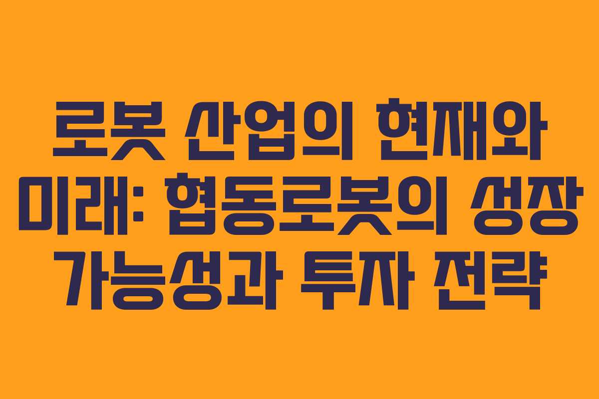 로봇 산업은 향후 10년 뒤 중장기적인 성장 가능성이 크지만, 현시점에서는 적정한 가격에 투자하는 것이 중요합니다. 특히 협동로봇과 감속기 관련 기업들은 장기적으로 주목할 필요가 있으며, 투자 시점과 전략을 잘 고려해야 할 것입니다.