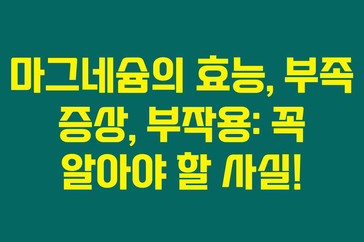 마그네슘은 우리 몸에서 필수적으로 필요한 영양소이지만 많은 사람들이 그 중요성을 간과하곤 해요. 마그네슘의 부족은 우리 몸에 의도치 않은 여러 부작용을 초래할 수 있거든요. 지금 마그네슘이 부족할지도 모르는 사람이라면 아래를 꼭 읽어보세요. 마그네슘의 효능과 부작용, 그리고 결핍 증상에 대해 뭐든지 알려드릴게요.