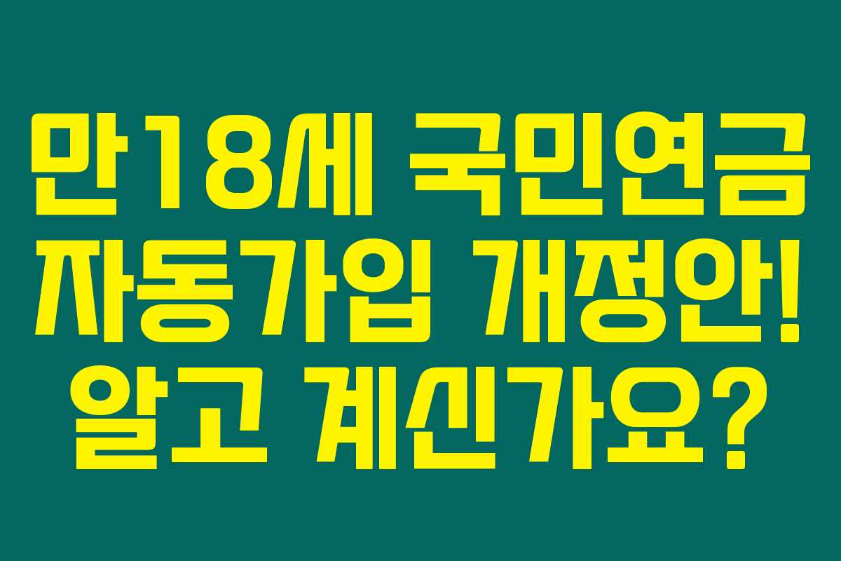 제가 직접 알아본 바로는, 만18세 국민연금 자동가입 개정안이 곧 시행된다는 소식이 있답니다. 이 개정안은 청년층은 물론 학부모에게도 큰 영향을 미칠 것으로 예상되는데요. 아직 구체적인 시행일은 정해지지 않았지만, 그 내용과 혜택에 대해 미리 알아보시면 도움이 될 거예요. 아래를 읽어보시면 개정안의 내용부터 가입 방법, 예상 보험료까지 한눈에 정리해볼 수 있습니다.