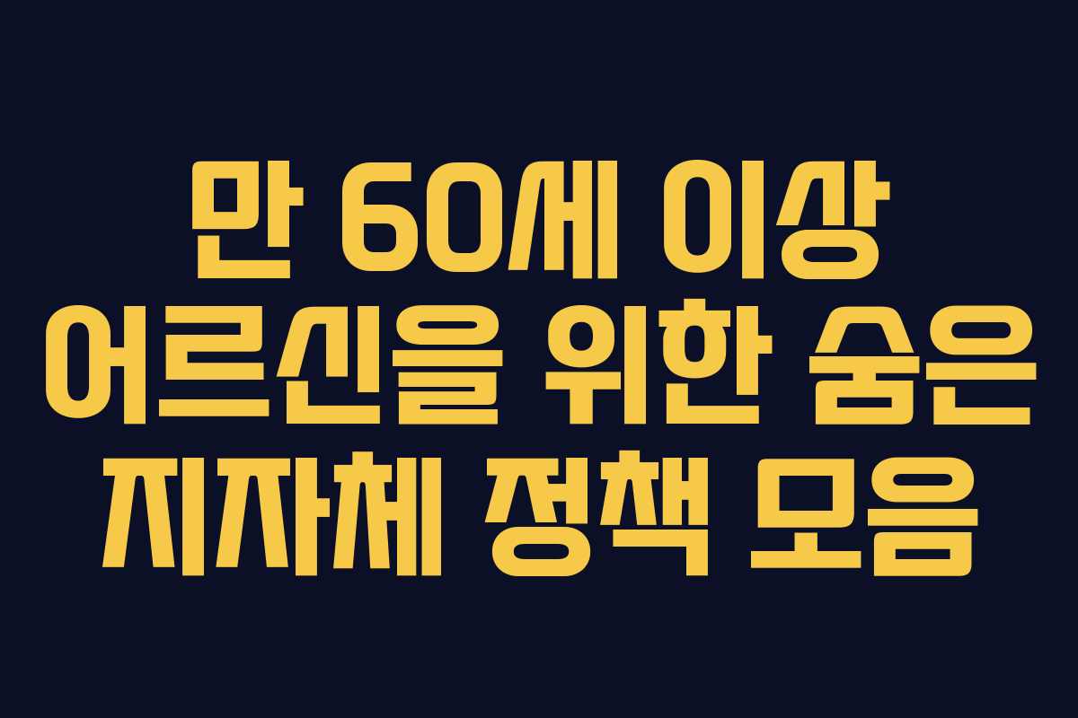어르신을 위한 다양한 지원 정책은 그들이 보다 건강하고 행복한 생활을 영위하도록 돕습니다. 이번 포스팅에서는 만 60세 이상을 위한 숨은 지자체 정책들을 정리해보았습니다.