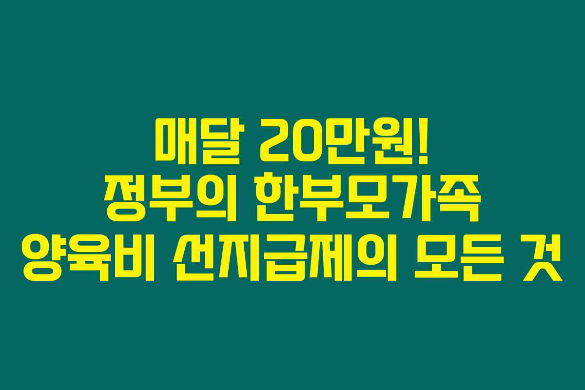 제가 알아본 바로는, 정부가 한부모 가족을 지원하기 위해 매달 20만원씩 양육비를 선지급하는 새로운 제도를 도입한다고 하네요. 이 제도는 특히 한부모 가정의 경제적 부담을 덜어줄 것으로 기대되고 있는데요. 아래를 읽어보시면 여러 측면에서 이 제도가 어떤 영향을 미칠지, 그리고 어떠한 절차로 진행되는지 자세히 알 수 있습니다.
