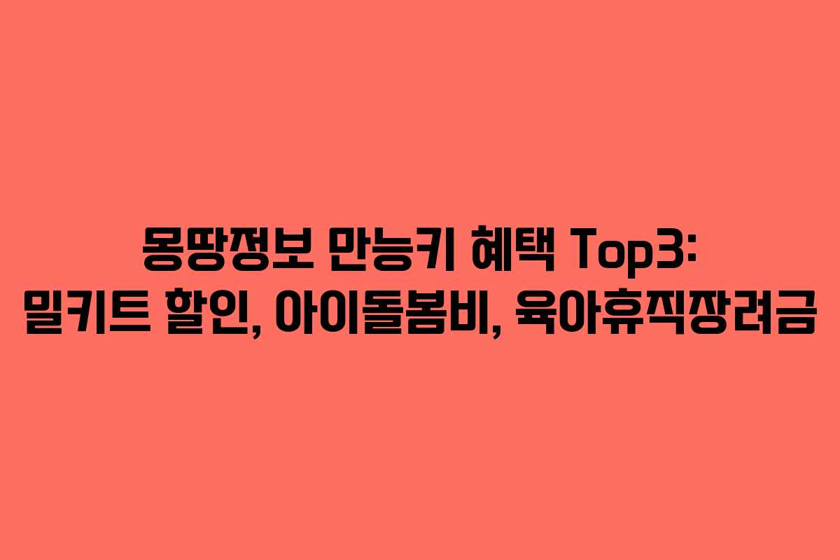 몽땅정보 만능키 혜택 Top3: 밀키트 할인, 아이돌봄비, 육아휴직장려금