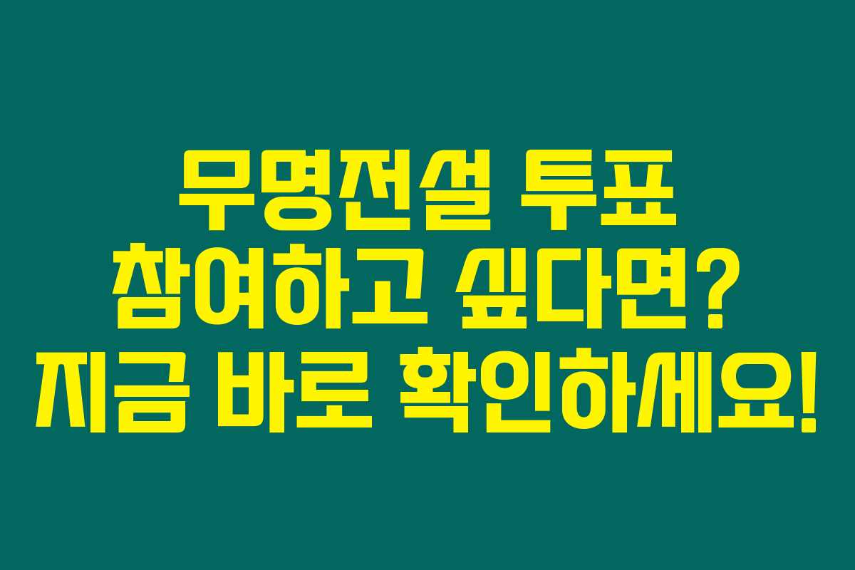 여러분이 생각하고 있는 무명전설에 대한 의견을 어떻게 표현할 수 있을까요? 바로 이렇게 투표를 통해 표현할 수 있어요! 관광객과 같은 느낌으로 적극적으로 참여할 수 있는 환경이 조성되어, 여러분의 소중한 의견이 존중받는 곳이랍니다.