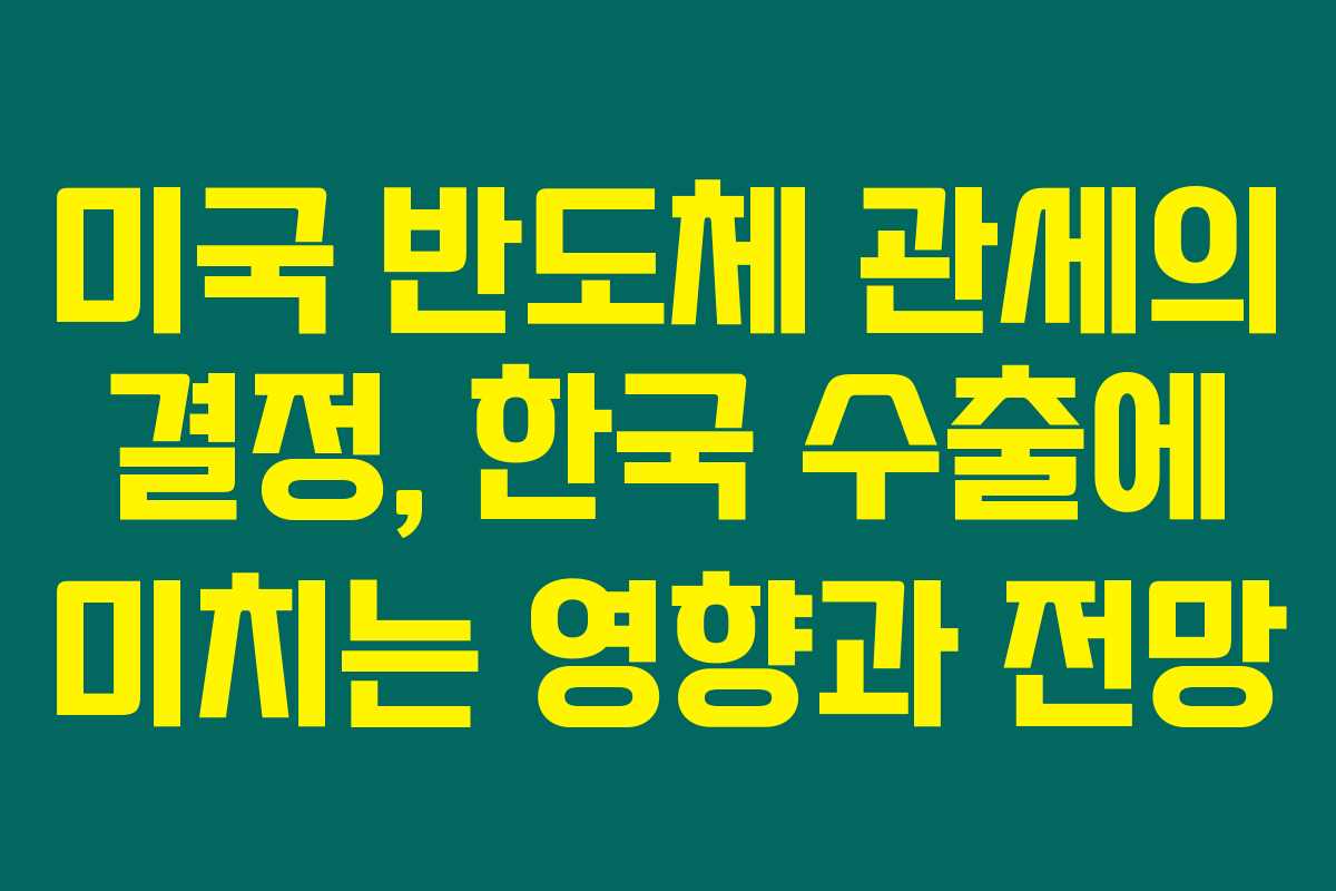- 미국의 반도체 관세 부과는 한국 수출에 어떤 영향을 미칠까요?