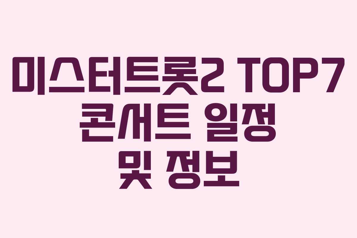 미스터트롯2 TOP7의 콘서트는 각 지역에서 특별한 경험을 선사할 것입니다. 많은 관심과 참여 부탁드립니다!