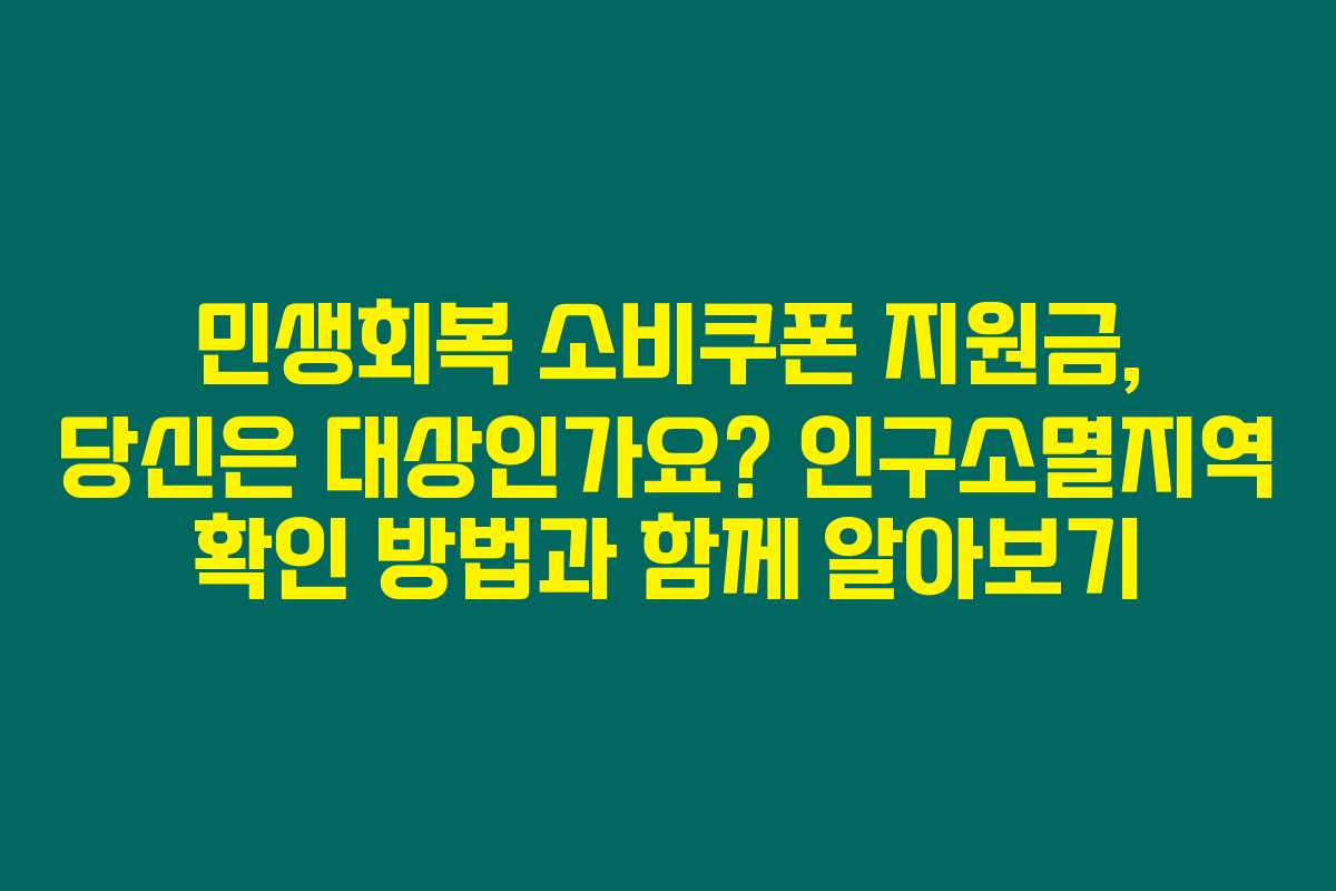 제가 직접 경험해본 결과로는, 요즘 민생회복 소비쿠폰 지원금에 대한 관심이 높아지고 있습니다. 지원금을 통해 경제를 활성화하려는 정부의 의도가 뚜렷하게 드러나고 있는데요. 특히 농어촌 인구감소지역에 거주하시는 분들은 추가 지원금을 받을 수 있어 꼭 체크해 보셔야 합니다. 아래를 읽어보시면 어떤 지원금을 받을 수 있는지, 그리고 내 지역이 인구소멸지역인지 확인하는 방법에 대해 자세히 알 수 있습니다.