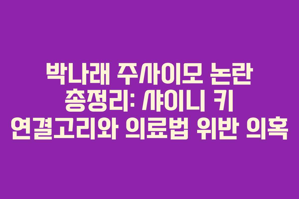 최근 개그우먼 박나래를 둘러싼 ‘주사이모’ 논란이 연예계와 의료계를 뜨겁게 달구고 있습니다. 이 사건은 박나래 주사이모로 불리는 인물과 샤이니 키의 관계, 그리고 비의료기관에서의 전문의약품 투여 의혹으로 복잡하게 얽혀 있습니다. 이번 글에서는 사건의 전개와 논란의 핵심을 자세히 살펴보겠습니다.
