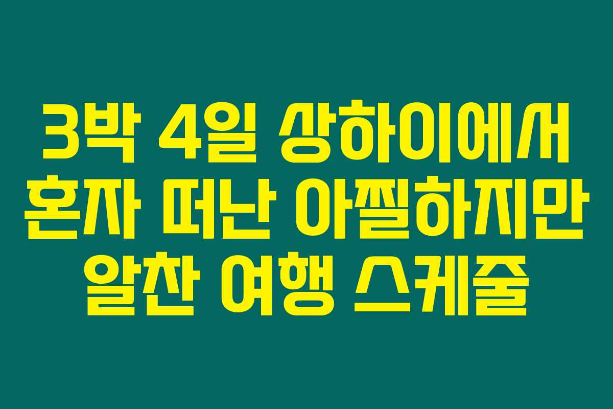 제가 직접 경험해본 결과로는, 3박 4일간의 상하이 여행은 혼자서도 충분히 즐길 수 있는 매력적인 일정이었어요. 상하이는 멋진 경치와 다양한 음식을 즐길 수 있는 도시지요. 아래를 읽어보시면, 여행 비용과 추천 코스를 잘 정리해 보았습니다.
