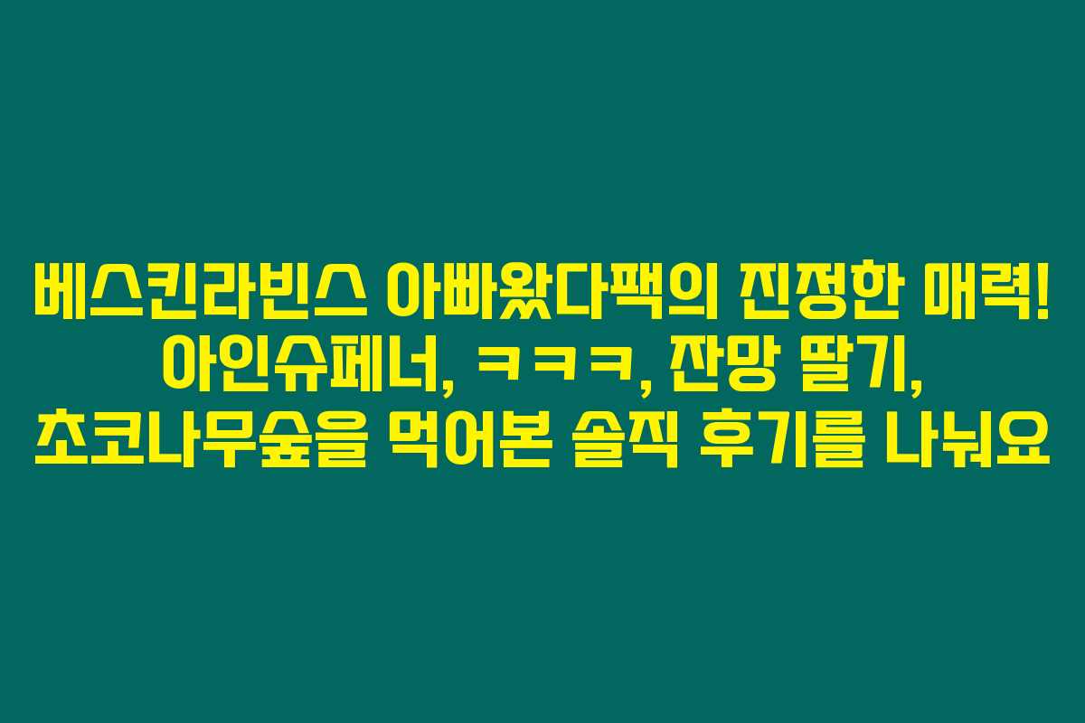 베스킨라빈스의 아빠왔다팩은 여러 가지 아이스크림을 즐길 수 있어 정말 매력적이었어요. 아인슈페너의 깊은 맛, 잔망 딸기의 부드러움, ㅋㅋㅋ의 달콤함, 초코나무숲의 특이한 조화까지 모두 각각의 매력이 있었답니다. 다음에 또 조화를 이룬 다양한 맛의 아이스크림을 즐기고 싶네요!